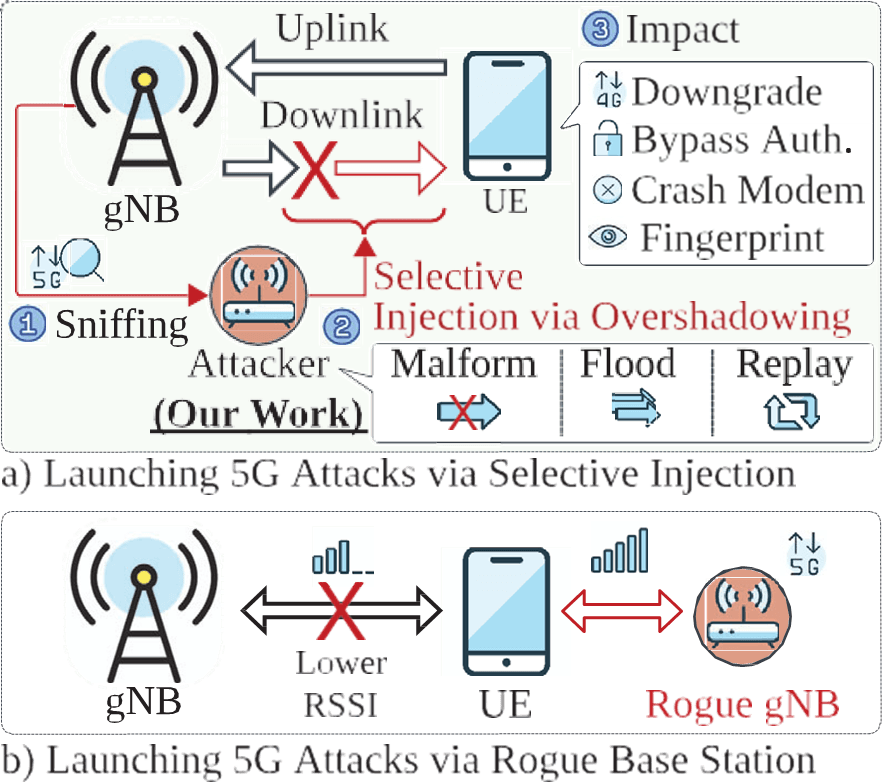 [1] Luo, , Garbelini, M., Chattopadhyay, S., & Zhou, J. (2025). SNI5GECT: A Practical Approach to Inject aNRchy into 5G NR. 34th USENIX Security Symposium. https://www.usenix.org/system/files/usenixsecurity25-luo-shijie.pdf