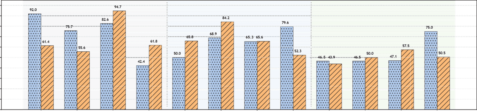 Éxito en la búsqueda de DCI: SNI5GECT ≈99% de acierto de forma consistente; NR-Scope queda en el rango ~18–47% según ronda.